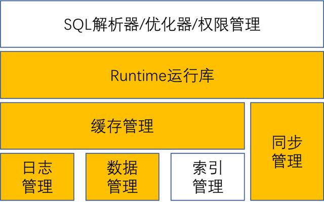 (图1:数据库体系结构,黄色部分代表区块链同样包含的组建)