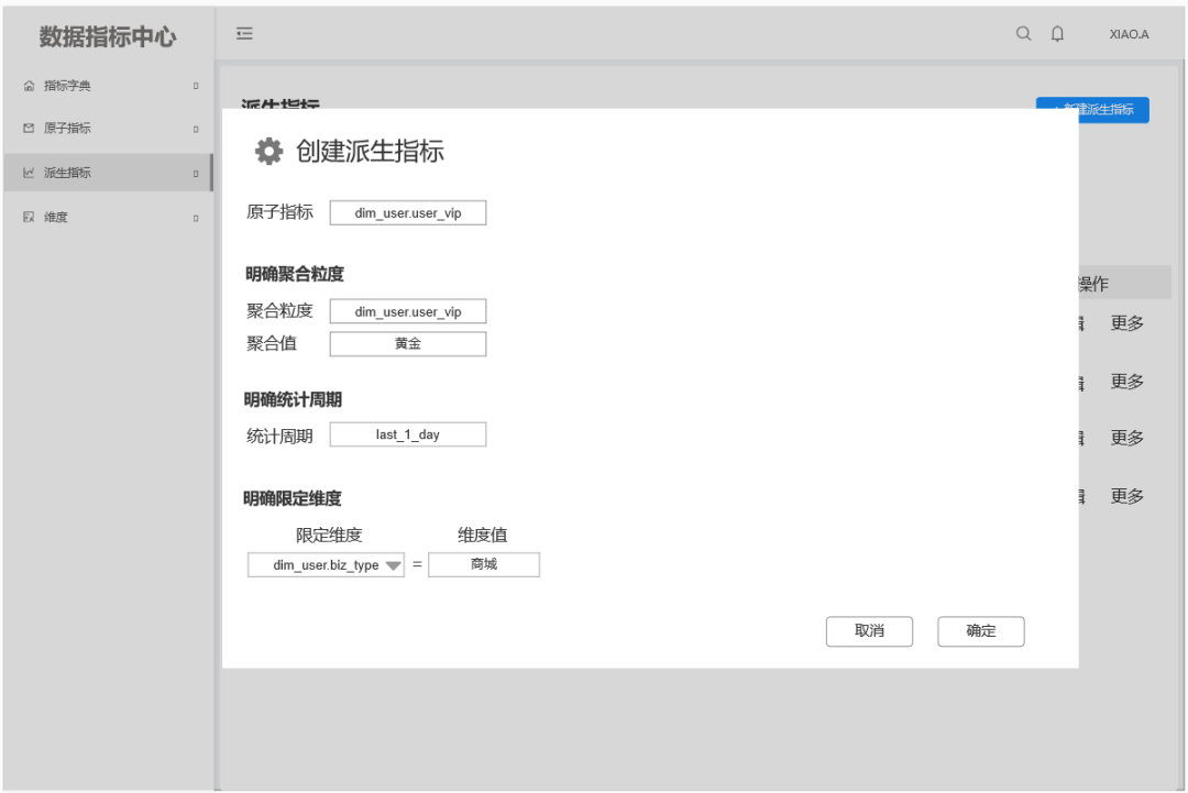 ③生成统一:原子指标与继承自它的派生指标的规范是一致的。