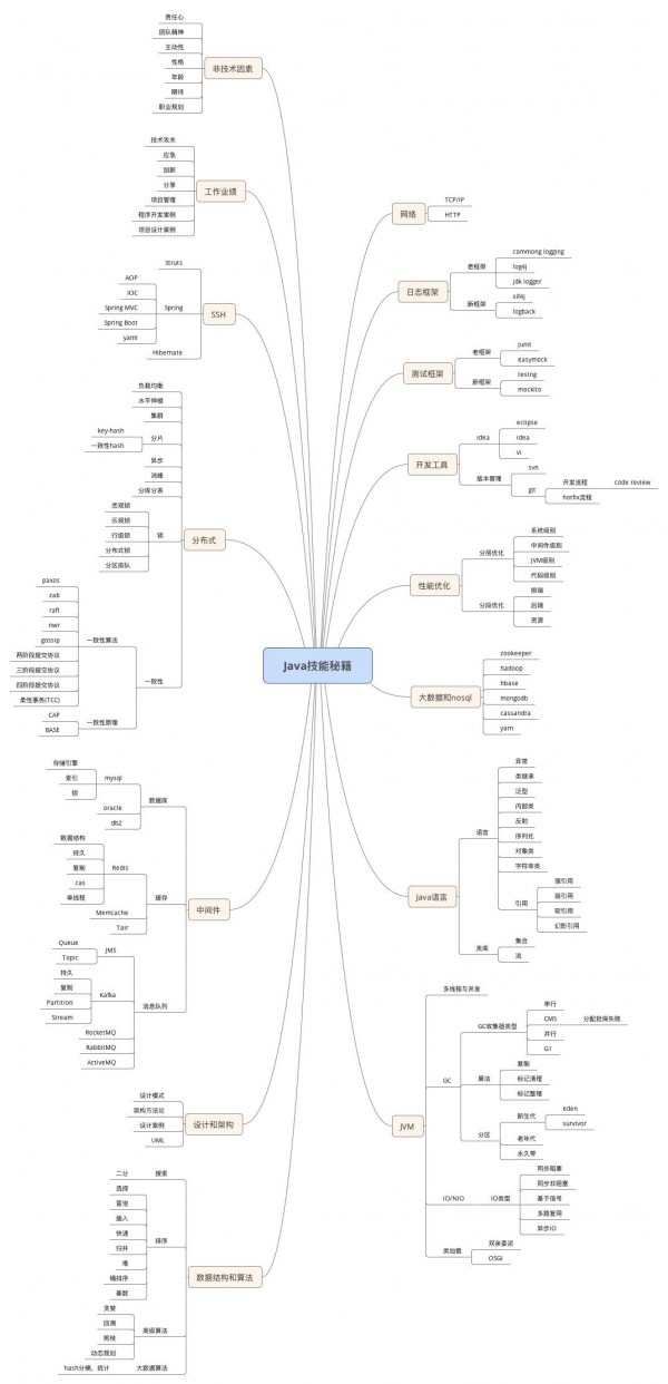 下面是笔者多年来积累和收集的知识技能图谱,有的是笔者原创总结的最佳实践,有的是小伙伴们的分享,其中每个秘籍图谱里面的内容都是互联网高并发架构师应该了解和掌握的知识。