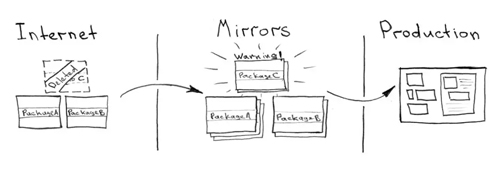 配置镜像和复制所有的依赖项到内部网络:Docker 镜像、rpm 包、源代码库、python/go/js/php 模块。