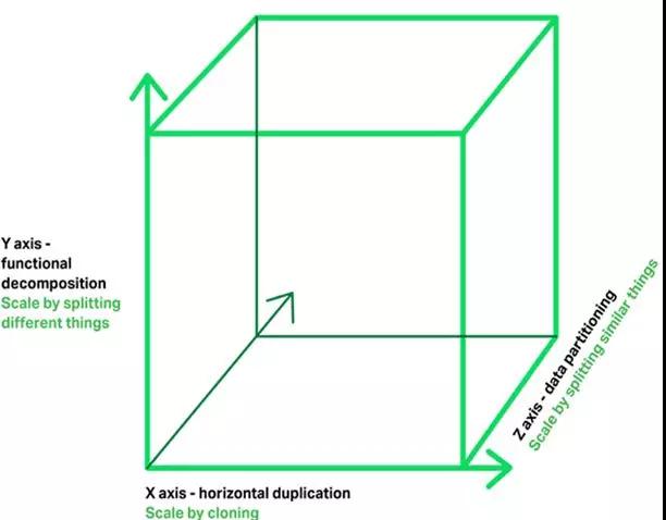 - Y 轴:将应用进一步分解为微服务(分库)。