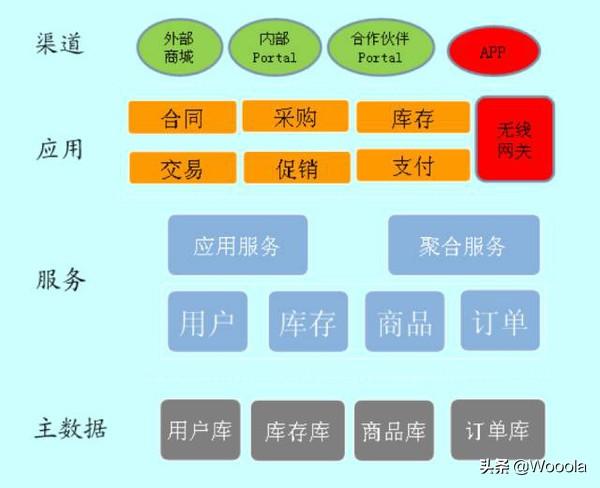 同时不管是企业内部用户,还是外部顾客所需要的功能,都由很多细分的应用提供支持,需要提供portal,集成相关应用,为不同用户提供统一视图,顶层变成一个AOA的架构(application orientated architecture)。