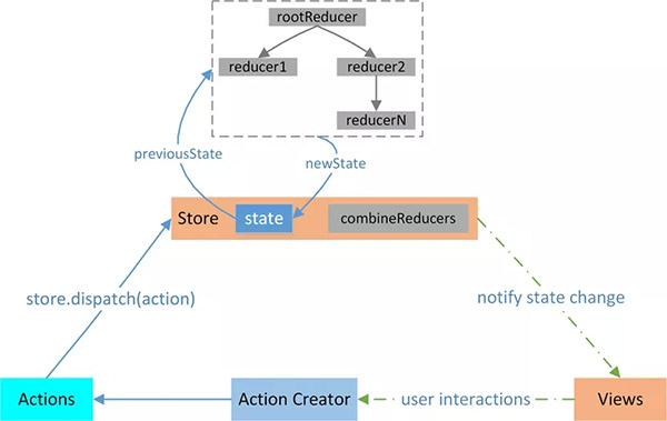 Facebook 首先提出 Flux 框架,引入单向数据流的编程模式,把 Action 和 Store 从 View 中解耦出去,极大的优化了原有状态管理的架构。