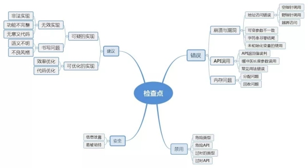 一种是源代码的漏洞扫描与检查,主要方法是对编码规范的检查,常见的编码规范有4类,分别是错误类,安全类,禁用类和建议类,具体内容详见下图。自定义代码规范的制定与实时更新,根据具体业务场景的代码规范的制定等等方法都能很好的检查出产品代码的漏洞。