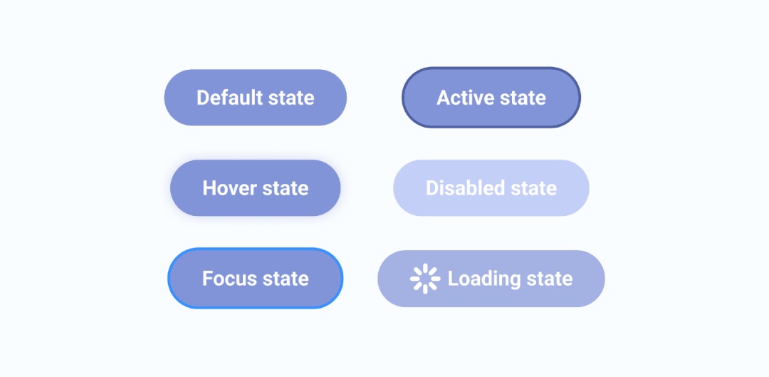 也可以从另一个方面来考虑按钮的设计样式。最主要的按钮状态包括以下这 6 种: