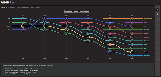 最后附上一张stateOfJS网站2021年的测试库满意度图表供大家参考 :