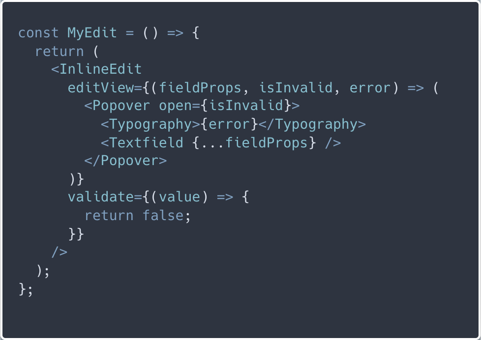 比如上面的例子中,editView并不是完全自由定义的,它需要或者接受或者忽略isInvalid和error这样的参数。
