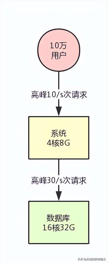 此时假设你的系统用户量总共就10万,用户量很少,日活用户按照不同系统的场景有区别,我们取一个较为客观的比例,10%吧,每天活跃的用户就1万。