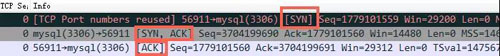- Client 收到 Syn + Ack后,回复 Server 一个 Ack 表示收到了 Server 的 Syn + Ack(此时 Client 的 56911 端口的连接已经是 Established)。