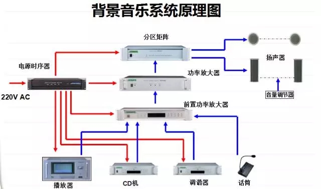 此图为总线制的背景音乐系统。