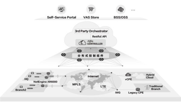 华为全新CloudWAN解决方案实现了对SD-WAN方案的全面超越,以新一代NetEngine AR6000 SD-WAN路由器为基石,分布式控制组件,敏捷控制器以及第三方编排器和其他应用系统等为辅,构建高性能、优体验、灵活组网、简运维的SD-WAN。
