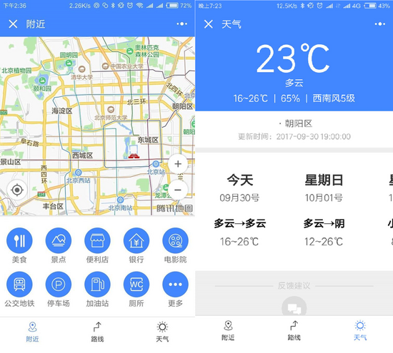 外出旅行地图导航必不可少,如果存储空间不够,可以用“地图lite”代替。除了路线规划,还有可以查询天气。