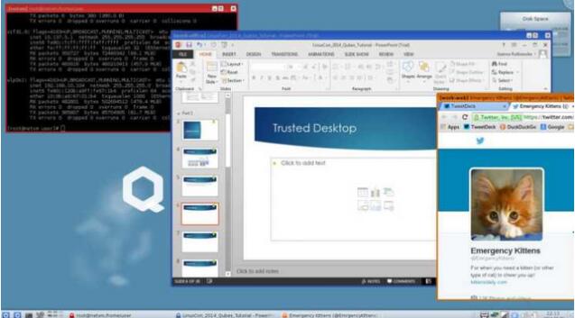 Qubes OS 是面向安全的、基于 Fedora 的桌面 Linux 发行,其主要理念是基于隔离的安全,而这靠轻量级的 Xen 虚拟机来实现隔离域。