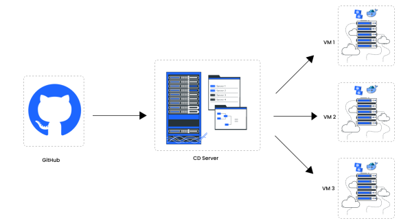实现这一点的最简单方法是让CD Server通过ssh连接到所有虚拟机,并将容器部署到每个虚拟机中。