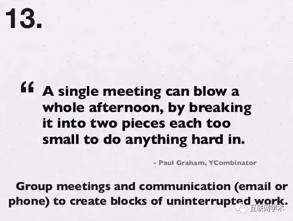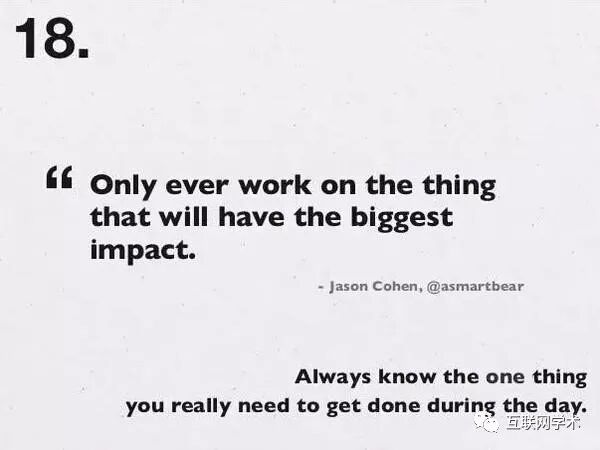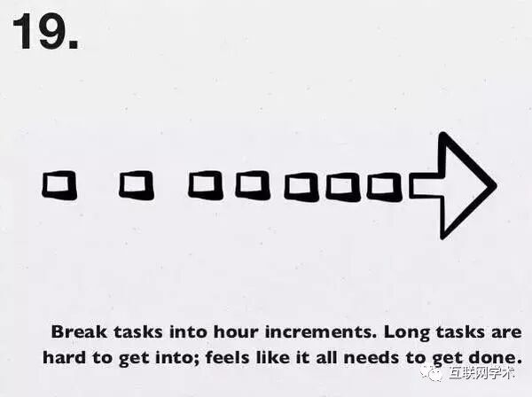 与第16点中讲的故事类似,但这个更为困难,尤其是在面对一个自己未曾接触过的任务,很难预估整体的时间,进而也很难按照时间切分任务。