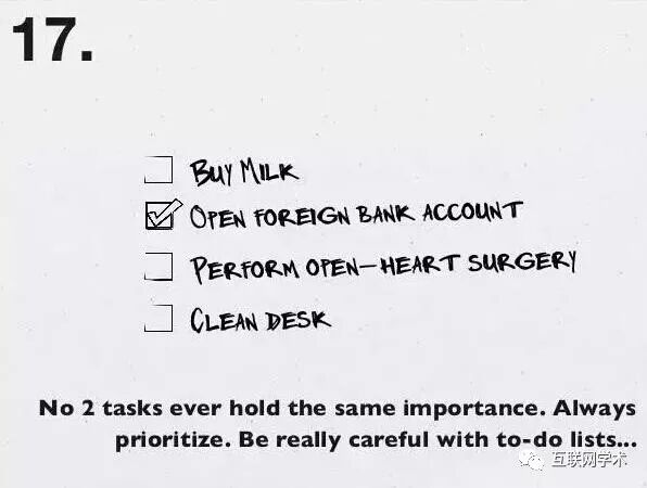 优先级意味着重要性,理解这一点很重要,尤其是在你身兼数职的时候,明确的优先级能让你工作更高效而且结果更可控。当然,不要把优先级作为借口,毕竟他无法替你做事情。