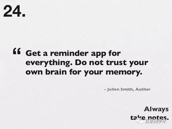 身边还是有些人有记录的习惯,但大家的记录多半停留在记,并没有或者很少事后查看,这一点也非常关键。记在本子上的东西不属于你,只有记在大脑中才是你的。