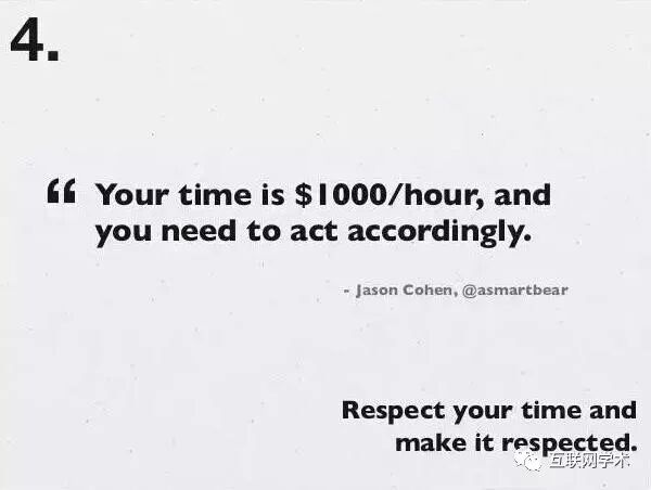 学会尊重自己的时间,并不是拒绝对任何人帮助。适当的拒绝,不但可以节省自己的时间,而且也可以让对方可以认真思考是否一定需要求助于别人。拒绝别人往往需要勇气,尤其是习惯了帮助别人的人。尝试一下,很多时候会带来惊喜,尤其是与宝贵的时间有关。