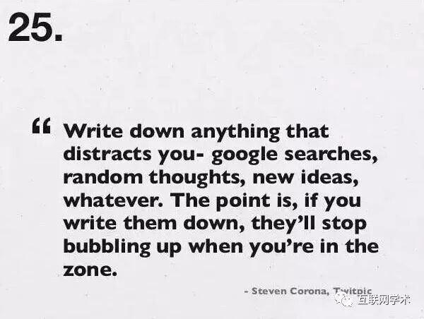 当然,每个番茄之间的休息时间以及重新回到番茄时间都需要长期的锻炼,就如第六点,指定工作程序,身体会适应一样。