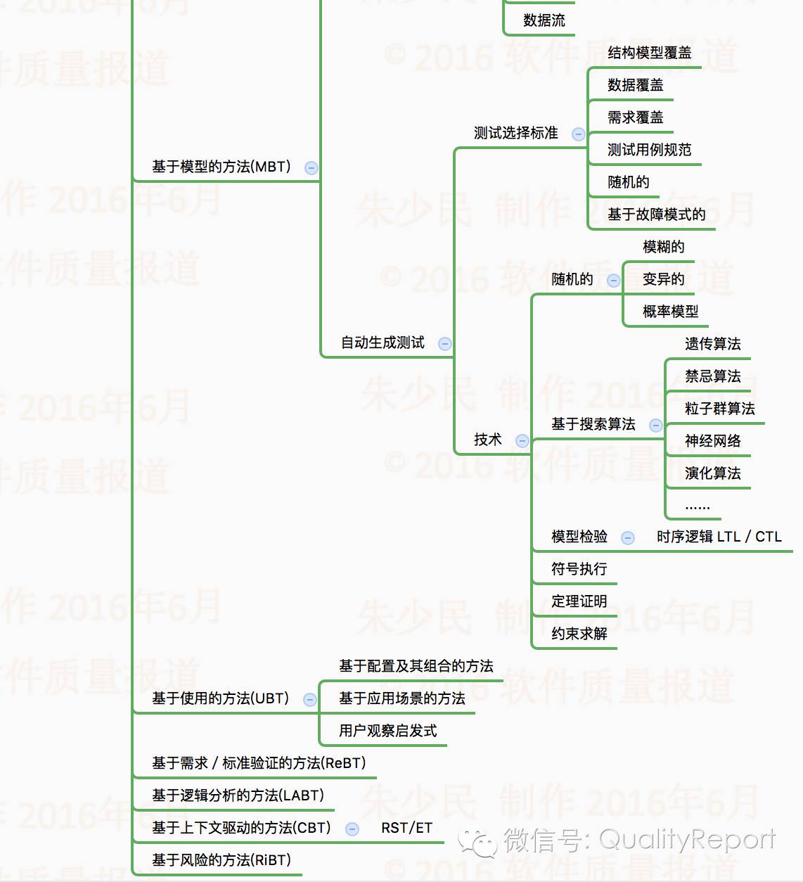前两天,发布了 TheTestingMap.org 一个软件测试(Software Testing):软件测试思维导图——太全了,深受大家欢迎。我撰文指出那张Mind Map问题比较大,有些重要的东西(如测试方法、工具等)缺失了,不重要的东西(如学习资源、社会等)反而列出来了,所以在朋友圈答应大家七、八月出一个真正全的软件测试思维导图。大家等不急啊,催着我早一点完成这个非常有价值的东西。尊敬不如从命,说干就干,今天用了差不多一天时间完成了“软件测试全景图”的思维导图,如下所示: