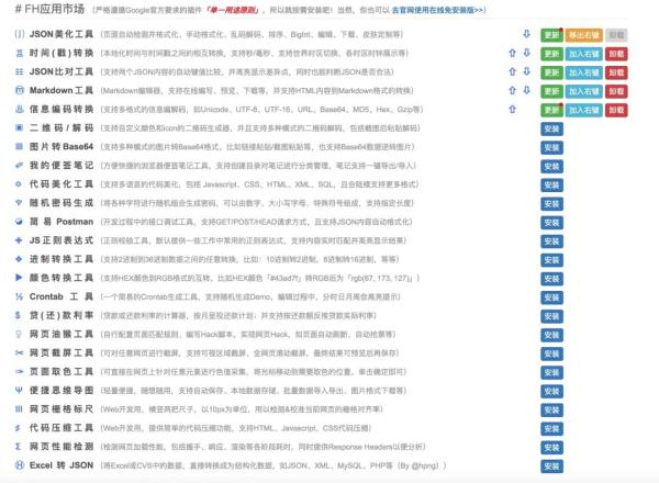 最后,再给大家推荐一个chrome插件,这个插件中囊括了很多上面介绍的在线工具的功能,如JSON格式化、时间戳转换、Markdown工具、编码解码、加密解密、正则验证等。