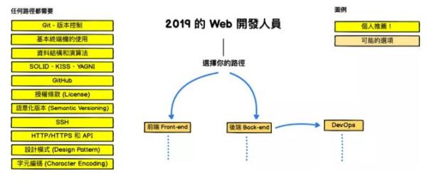 这份路线图展示了如何成为一名合格的前端、后端或DevOps开发人员,目的是给你一个轮廓,并在你困惑接下来该学什么的时候指导你。而不是鼓励你学习很潮很流行的东西。你应该要更加了解,为什么某个工具会比其他的工具更适合用在一些情况,并记住潮和流行,从来就不代表它是最适合完成任务的工具。