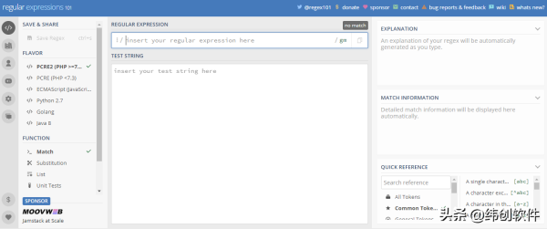 程序员可以利用它实时查看匹配信息,Group可以用不同颜色进行标记,支持Python,php以及javascript 语言的regex匹配。 测试表达式非常直观,而且有 Quick Reference 来帮助你记忆正则表达式的规则, Explanation 进行正则表达式的解释。
