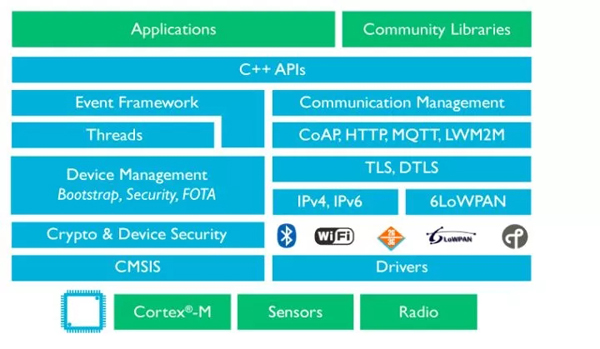 早在嵌入式设备连接到互联网之前,传统嵌入式操作系统就已设计出来。 因此,这类操作系统无法解决针对IoT 设备的新要求。相比而言,mbed 操作系统是专为IoT 设备而特别构建。设计围绕着IoT设备的五个核心原则:安全性、连接性、可管理性、效率和生产率。