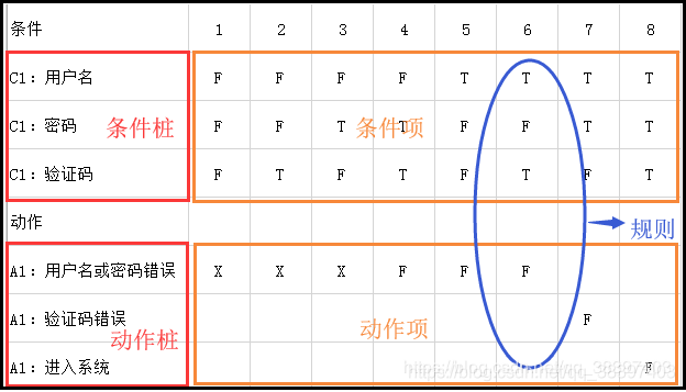 决策表又称判断表,是一个用表格形式来整理逻辑关系的工具,由横向的条件(因)和动作(果)和纵向的规则(测试用例)组合而成。决策表是分析和表达多逻辑条件下执行不同操作情况的工具。